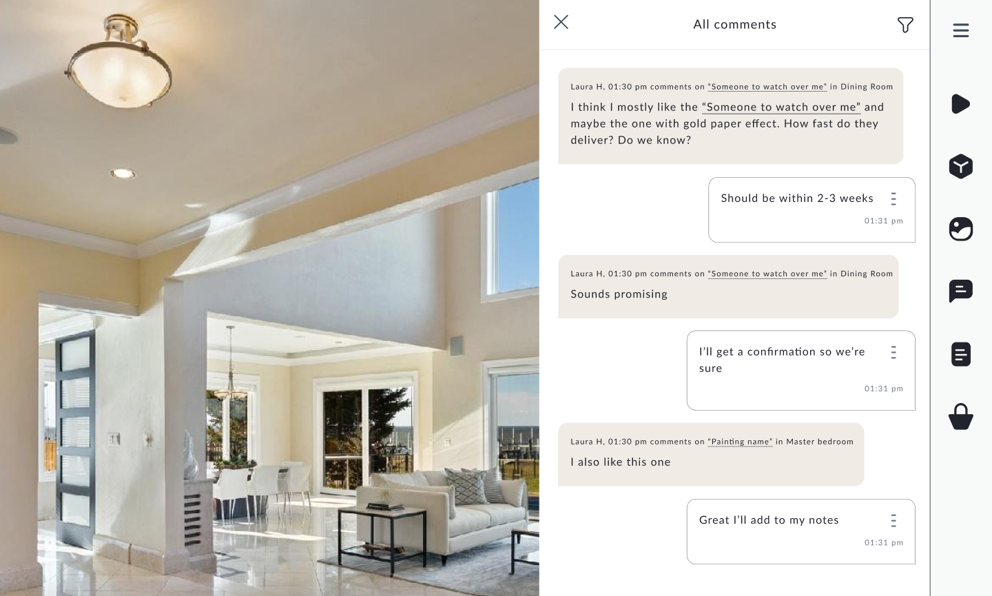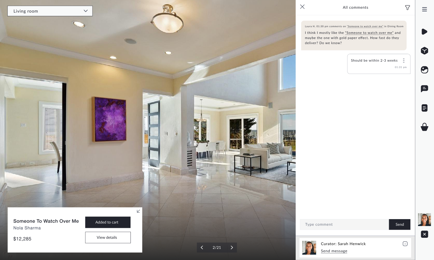 Add collaborators—assistants, curators, or fellow designers—to your project. Work together seamlessly to refine selections, comment on artworks, and finalize the perfect curation.
