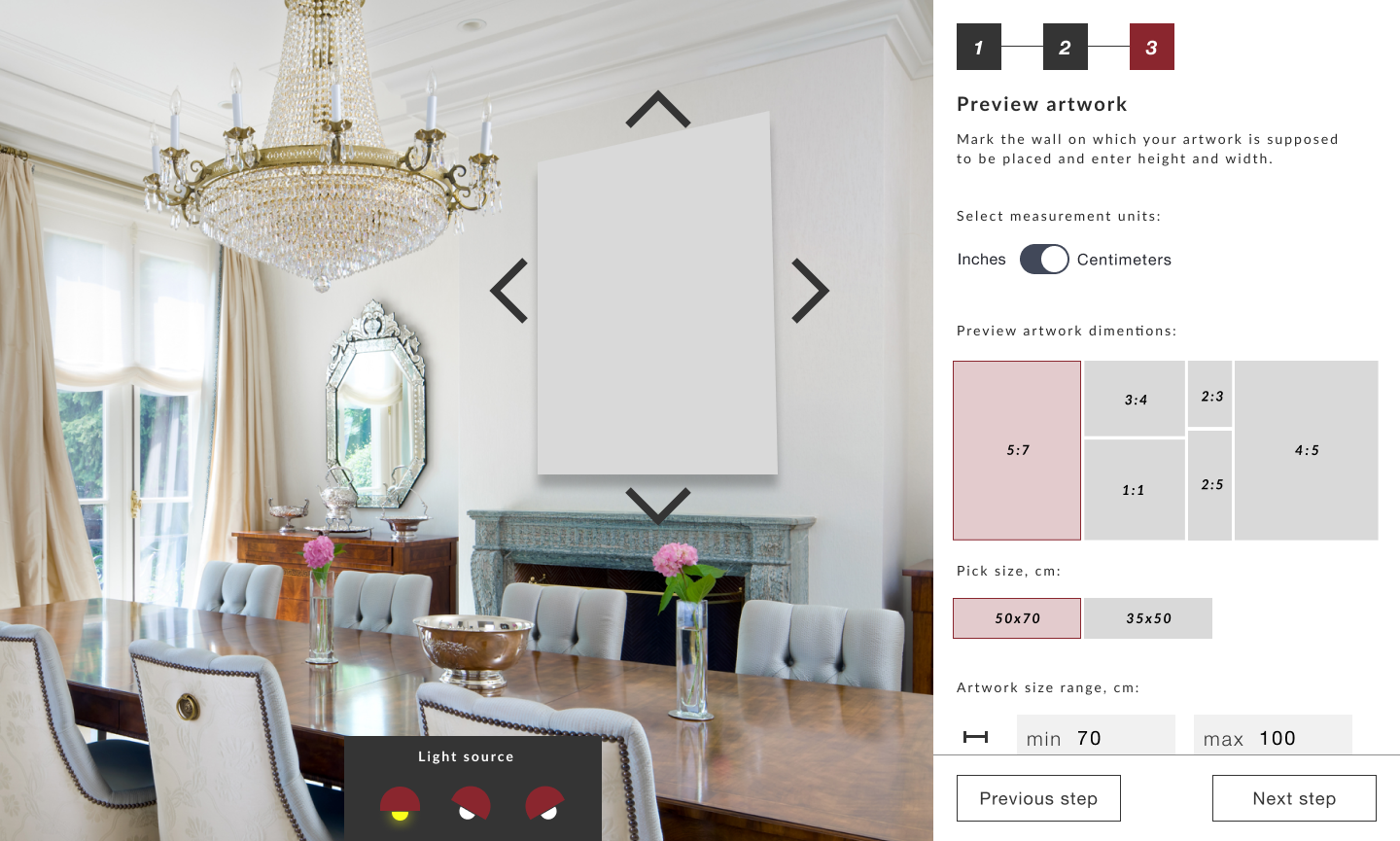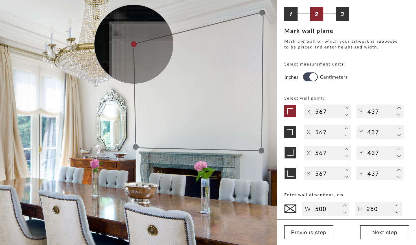 Bring your project to life by uploading real room photos or altenatively select inspirational spaces on the platform. Whether you’re designing a single room or an entire property, this becomes the canvas for your art vision.